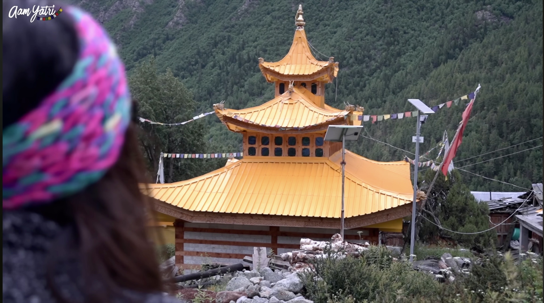 At one end, you’ll find a monastery — calm, elevated, and deeply rooted in Buddhist tradition. Built using Kinnauri architectural elements, it combines wood and stone in a way that feels both strong and simple. From its position, it overlooks the village, almost like a silent guardian.