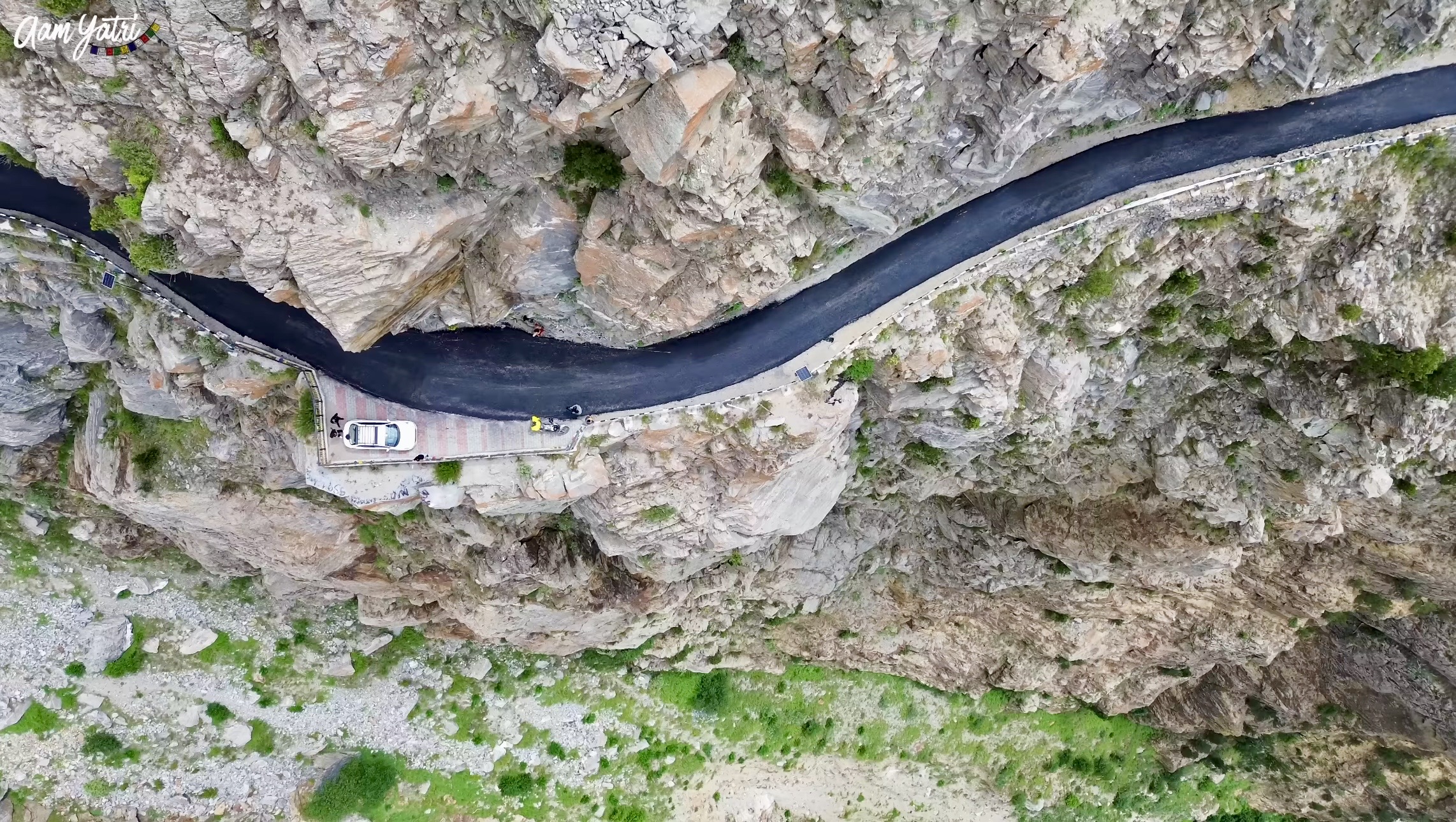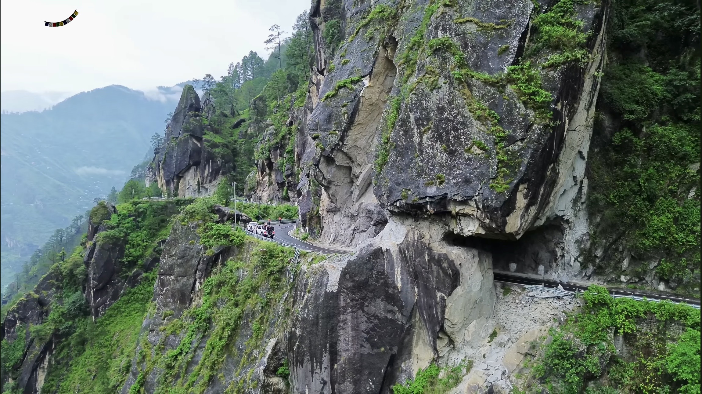 There are stretches where the road is carved directly out of rock, hanging between cliffs and valleys that drop without warning. Landslide zones appear suddenly. Loose stones scatter across the path. At some turns, visibility drops so low that you rely more on instinct than sight.