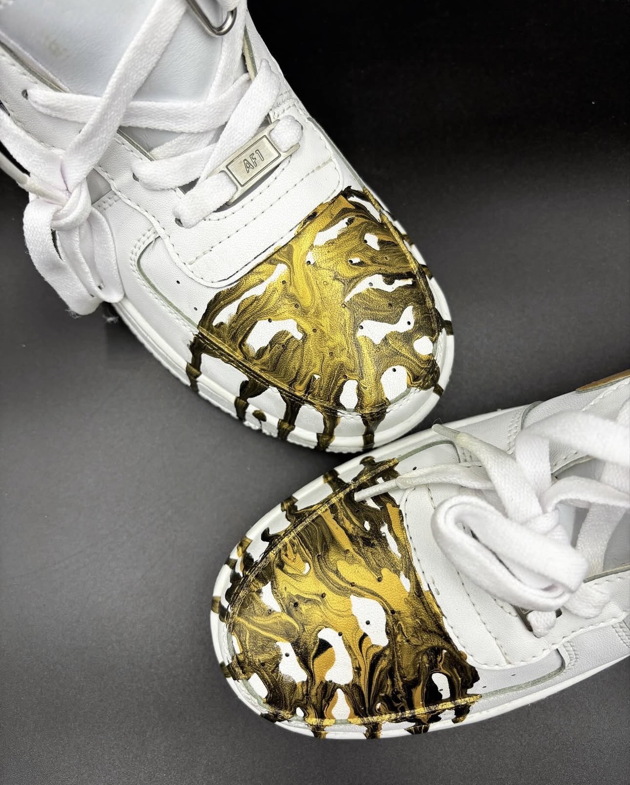 A floral hand-painted design built around elegance and strong handcrafted character. This pair balances softness and visual detail while keeping every piece individually unique.